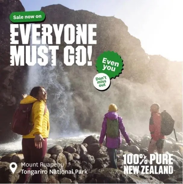 “Everyone Must Go!”, diz o slogan, que pode ser traduzido como “Todos devem ir”, impresso em cartazes que mostram pessoas em paisagens majestosas da Nova Zelândia, parte de uma campanha de NZ$ 500 mil (cerca de R$ 1,6 milhão) revelada no último domingo (16/2). sourceFonte: G1
