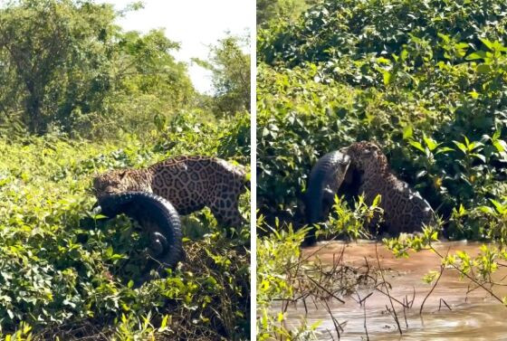 VÍDEO: Onça pintada é flagrada atacando jacaré
