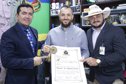 A Assembleia Legislativa, por intermédio do deputado Elizeu Nascimento (PL), entregou honrarias para duas personalidades de Mato Grosso. O primeiro agraciado foi Mohammad Ata Leimoun, de origem palestina, que recebeu o título de cidadão mato-grossense, sendo que, em seguida, o jogador ao Shabab Al-Ahli, dos Emirados Árabes Unidos, Rikelme recebeu a medalha de honra ao […]