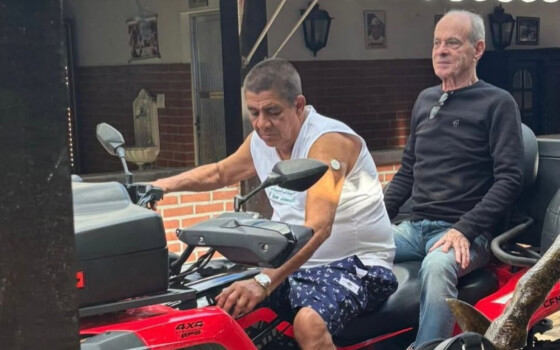 Ney Matogrosso faz passeio de triciclo com Zeca Pagodinho