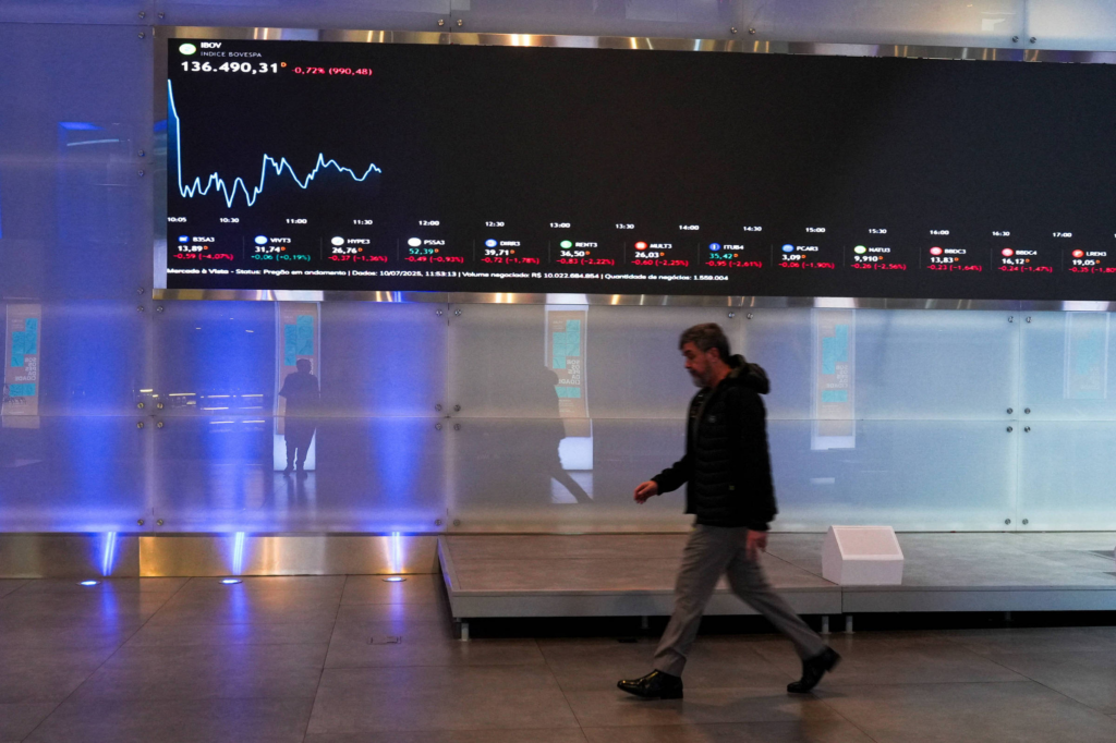 As sobretaxas de 50% a produtos nacionais, anunciadas na quarta-feira (9) pelo presidente dos Estados Unidos, Donald Trump, derrubou uma série de ativos brasileiros –em especial ações de empresas de forte vínculo comercial com os norte-americanos. O dólar chegou a tocar a máxima de R$ 5,621 durante a sessão, enquanto papéis da Embraer derreteram mais […]