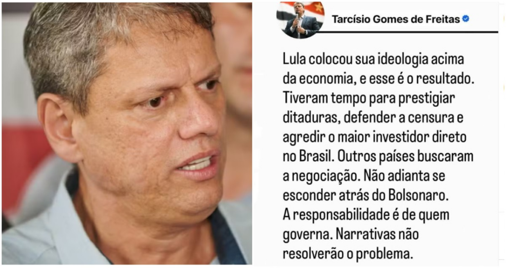 Cotado para disputar a Presidência contra o atual presidente em 2026, Tarcísio disse que “a responsabilidade é de quem governa” e que “Lula colocou sua ideologia acima da economia”. Tarcísio e Gleisi se manifestam sobre tarifa de Trump O governador de São Paulo, Tarcísio de Freitas (Republicanos), disse nesta quinta-feira (10) que a tarifa de […]