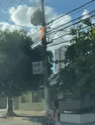 Poste de energia pega fogo em Cuiabá; vídeo