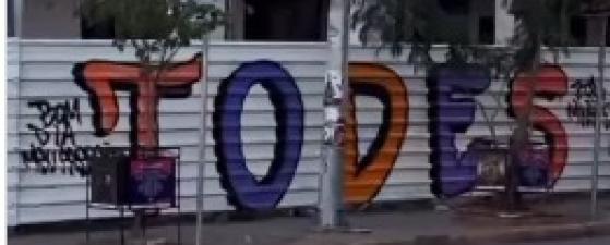 Pichação com "todes" é feita próxima à prefeitura