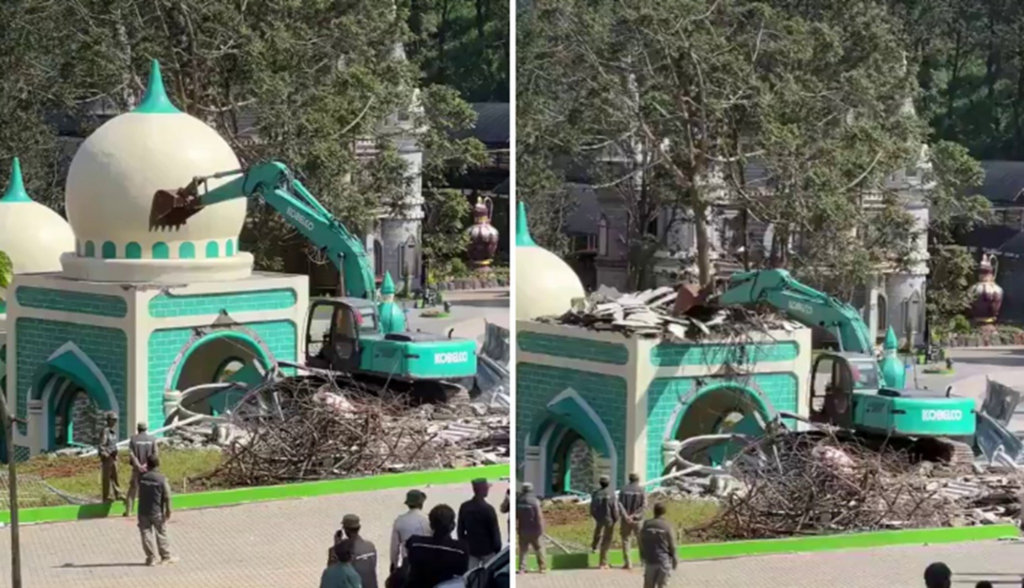 É #FAKE que vídeo mostre demolição de mesquita na China; registro ocorreu em parque temático na Indonésia
