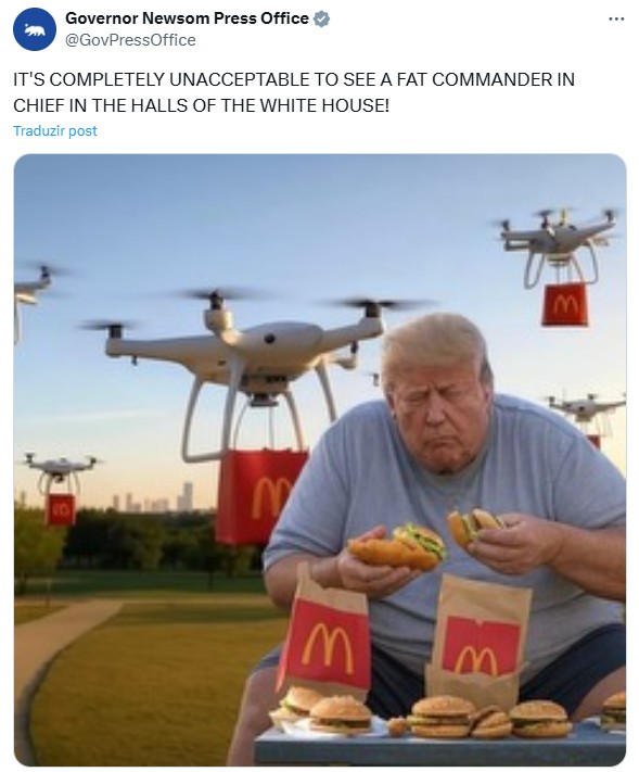 Governador da Califórnia ironiza peso de Trump após secretário de Guerra ameaçar ‘generais O governo de Donald Trump anunciou novas regras físicas para os militares, que poderão ser demitidos caso estejam acima do peso e não consigam emagrecer. A medida, assinada pelo secretário de Guerra Pete Hegseth, provocou críticas e ironias da oposição, que chegou […]
