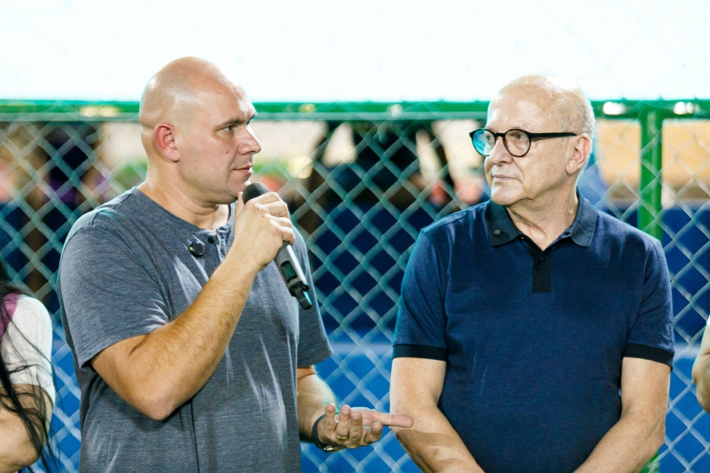 Abilio e Pivetta jogam futebol em campo no Pedra 90