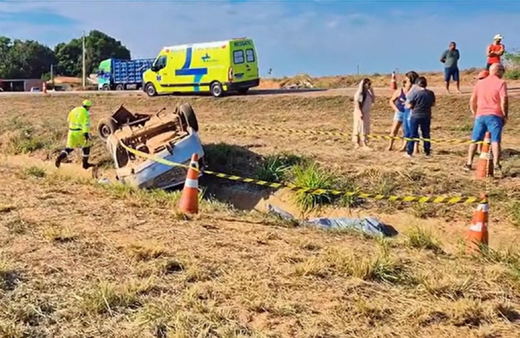Capotamento deixa uma pessoa morta e outra gravemente ferida na BR-364, em São Pedro da Cipa