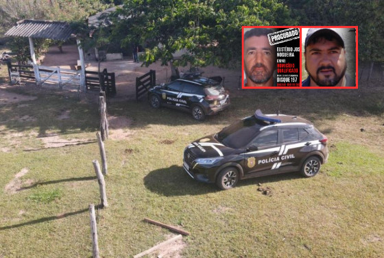 Eustério José Nogueira e o seu filho Silas Domingos Nogueira são procurados pela Polícia Civil pelo assassinato de Leandro Souza Rocha